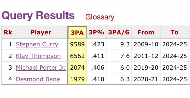 9月9日篮球数据网站Basketball Reference公布一项历史纪录:NBA史上仅4位球员达成生涯场均6+三分出手且保持40%以上命中率,具体包括: